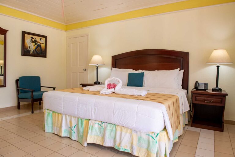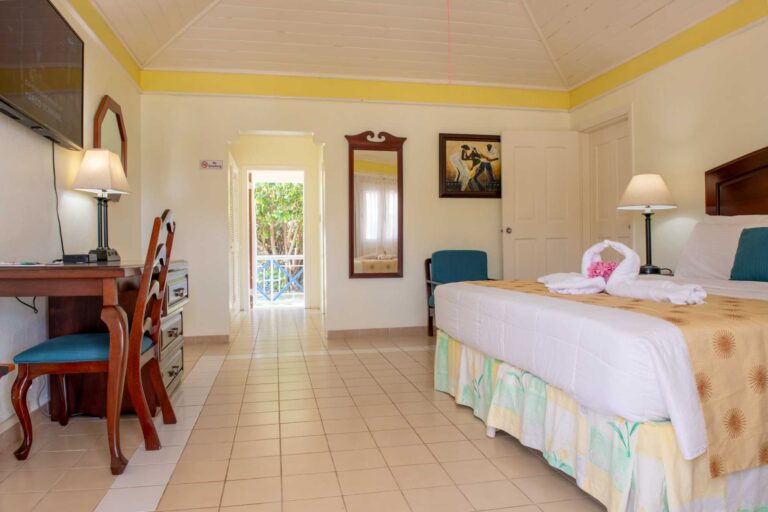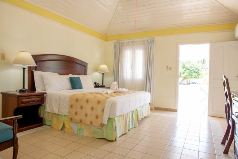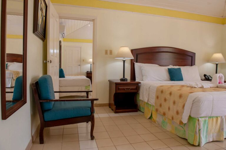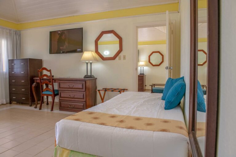 Our spacious rooms feature a choice of a king bed, two doubles, or twin beds, with some offering adjoining doors for families and groups. We have both garden view and ocean view rooms, all just steps from the beach.